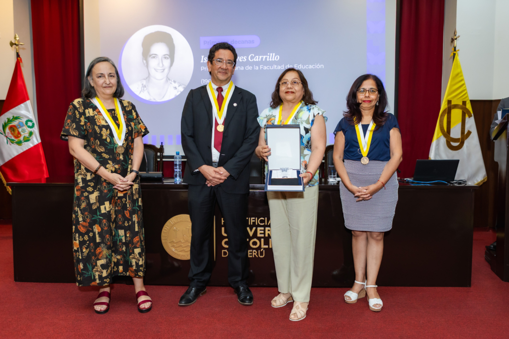 Desde la Facultad de Educación, se resaltó de manera especial el reconocimiento a la Dra. Isabel Reyes Carrillo, primera decana de esta facultad entre 1967 y 1969, quien lideró en un contexto de reforma universitaria y contribuyó significativamente a su organización y al surgimiento del Departamento de Educación. Este reconocimiento fue recibido por la actual decana, Dra. Diana Revilla, reafirmando la continuidad y vigencia de este legado en la formación docente.