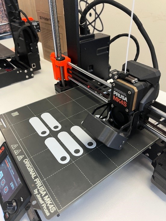 Figura 1. Proceso de impresión 3D de las tiras de mecano diseñadas en Tinkercad.