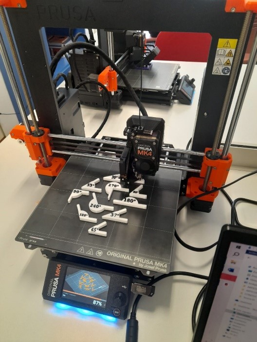 Figura 2. Proceso de impresión 3D de la herramienta para verificar ángulos diseñadas en Tinkercad.