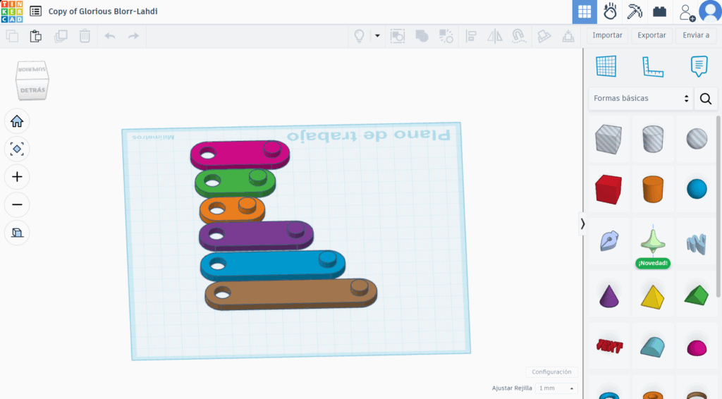 Figura 3. Vista final del diseño digital de las tiras de mecano en Tinkercad.