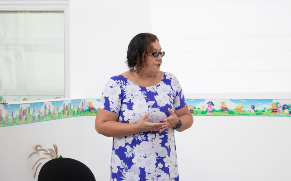 La actividad estuvo a cargo de la Magíster Carmen Sandoval, directora de la carrera de Educación Inicial, quien desarrolló una reflexión especializada sobre el valor de la observación pedagógica en la primera infancia como una herramienta fundamental para comprender los procesos de aprendizaje, fortalecer la creatividad y promover una interacción cercana y significativa con los niños.